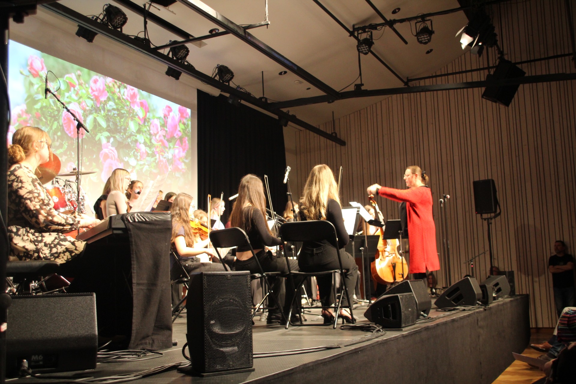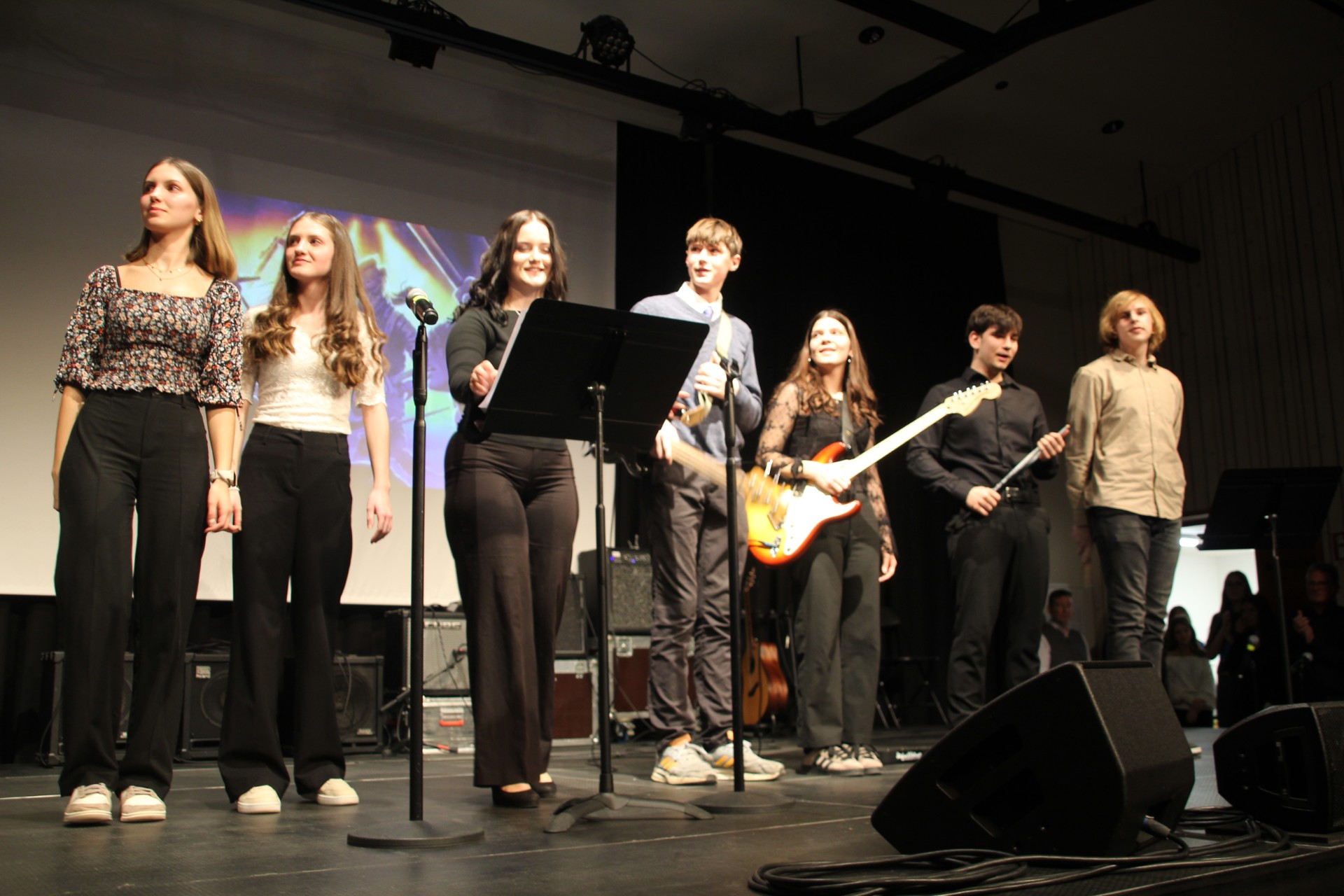 Die Gäste erwartete ein bunt gemischtes Programm. So gab es flotte Rhythmen am Schlagzeug, ruhige Popballaden und klassische Orchesterstücke zu hören. Besonders begeisterten die eigenständigen Arrangements einiger Schülerinnen von Songs wie „Wildflower“ von Billie Eilish oder „Bésame mucho“ von Jeremias. Der Abend gipfelte in mitreißenden Darbietungen der BORG-Bands.